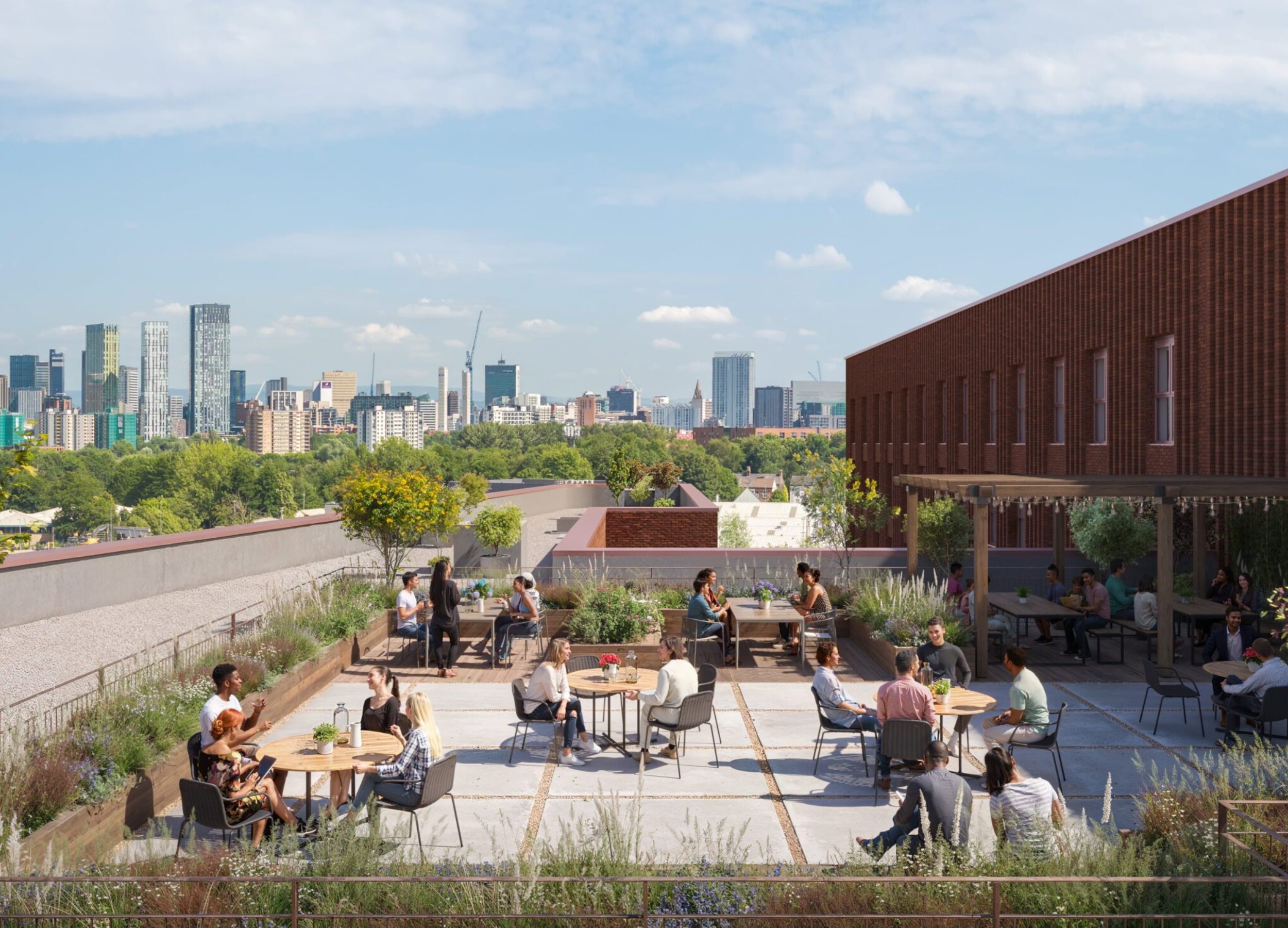 A key feature of the Salford Rise project is the construction of an 11-metre-wide elevated walkway over Frederick Road, connecting the University of Salford campus to the Crescent Innovation zone. This ‘boulevard in the sky’ will enhance pedestrian and cyclist access, fostering greater community connectivity and supporting sustainable travel options for students and residents alike.
